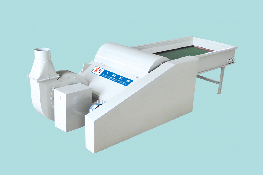 各種捆包纖維均可開松,并經(jīng)風機輸入下道工序之用。預開松采用羊角齒開松,減少纖維損傷;主開松采用梳針釘板開松,開松效率高,質(zhì)量好;附強磁鐵吸取金屬雜質(zhì)。